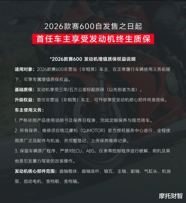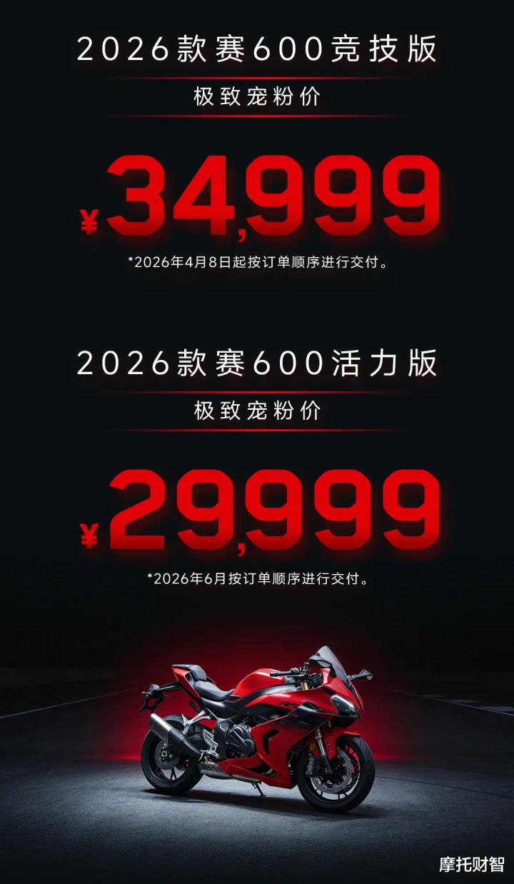 QJMOTOR2026 款赛 600 认真上市,售 29999 元起,推出活力版、竞技版两个版块,竞技版限时33999。在能源、电控、安全成就上完周详面升级,同期搭配焕新好意思学蓄意与忠诚车主权力,性价比进一步栽种。新车中枢能源升级为 680cc 水冷四缸发动机,最大功率 74.5kW、最大扭矩 68.0N・m,最大马力 101.3PS,极速达 220km/h,引擎里面中枢部件也经工艺与材质优化,历久性和可靠性栽种。