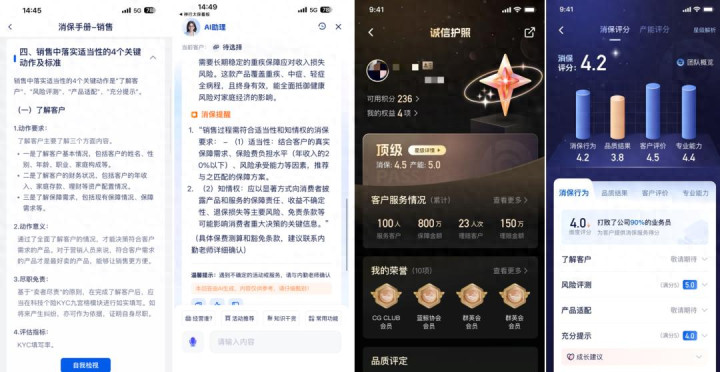 小曹是石家庄的又名业务员。在展业前,小曹通过智能客经助手获取适用于本次面访的消休养点清单,明确“该作念什么、怎么作念”。在面访中,濒临客户陈女士的瞻念望,小曹展示由公司背书的“诚信护照”,其诚信星级、培训记载、客户评价等数据直不雅呈现,快速捣毁客户疑虑。智能助手同步提供消保话术指导,确保疏导法式透明。面访浪漫后,小曹通过智能KYC完成日记填写,AI自动校验消保行为落实情況,生成后续需讲明试验的领导,达成流程可回溯、连累可考据。