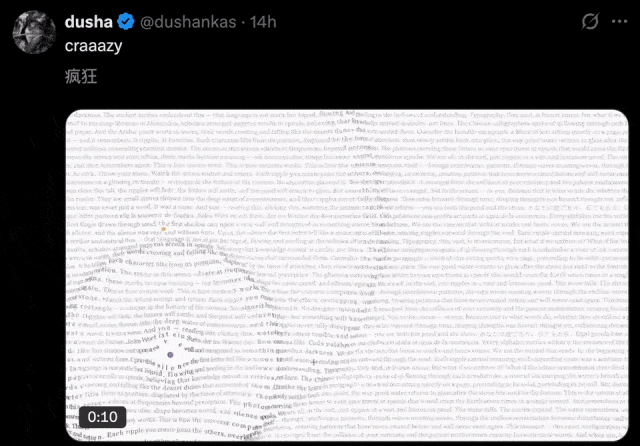 有东说念主把物理定律搬进了笔墨排版,重力、碰撞、弹性,败兴的公式斯须在屏幕上具象化了。