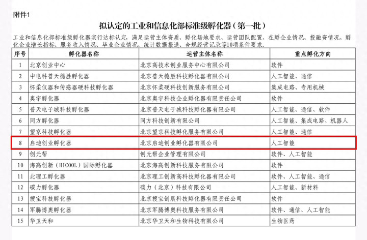 近日,工业和信息化部科技司公示了拟认定的《工业和信息化部科技型企业孵化器(第一批)》名单。启迪创业孵化器、宁波市启迪之星科技企业孵化器、安徽启迪大街科技城孵化器位列其中。此外,由启迪之星运营的内江汉安孵化器等同时入选。