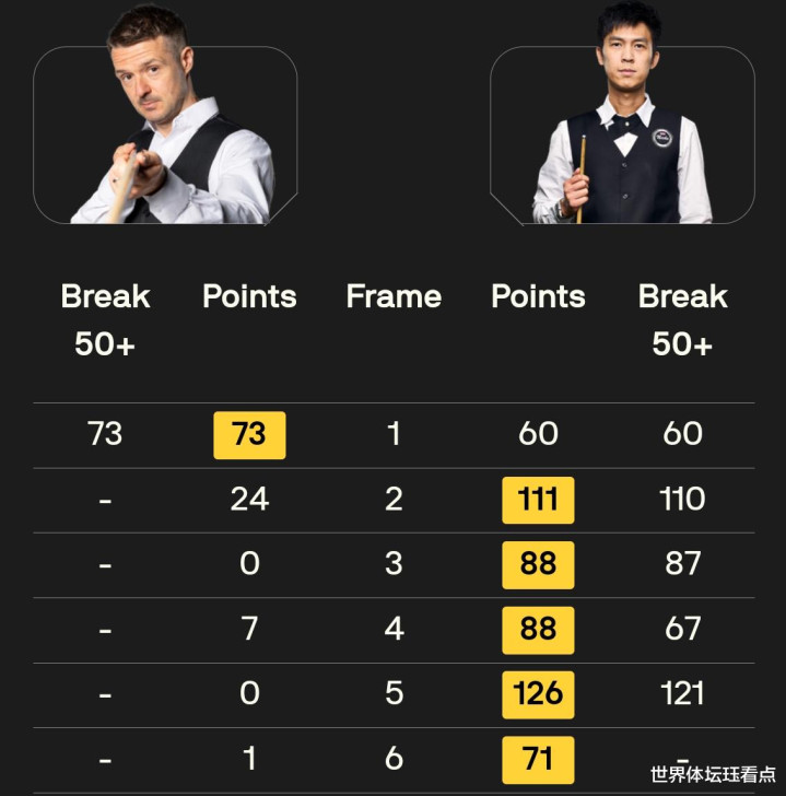 第四局,特鲁姆普单杆打出118分的进展以126:16再追一局并2-2战平佩奇。第五局,特鲁姆普单杆打出101分以101:6赢下此局3-2反超佩奇赢得逾越。