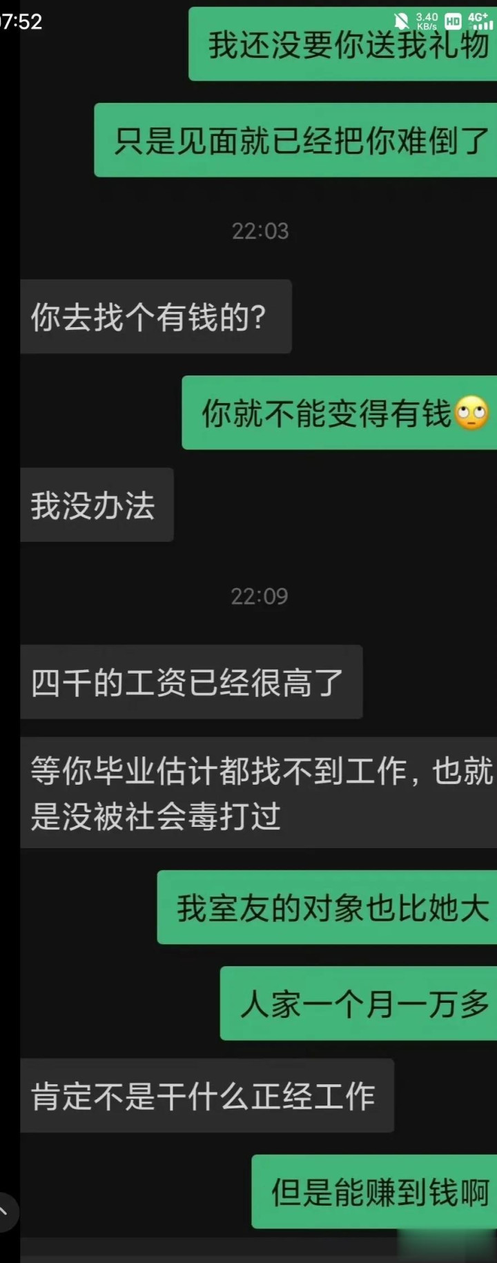 网友神评:宇宙不要过多盯着男生的一万不是安靖责任的发言了。因为他俩的档次两边齐知谈,凭才智挣不到一万是默许的共鸣。。只可评释知谈对方没钱别条款太多。