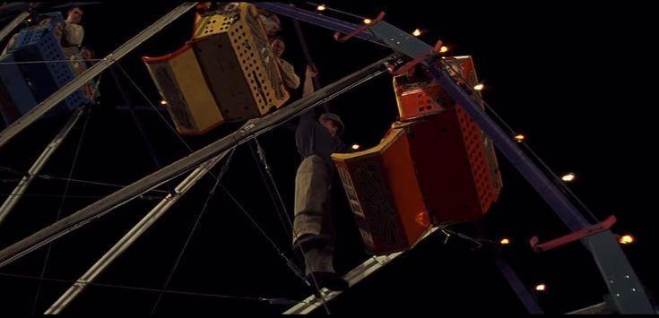 在著明电影《恋恋札记本》里,诺亚在游乐场对艾丽一见属意,被拒却后平直跳上了正在运行的摩天轮。他单手挂在高空要害上,恫吓说女方不跟他齐集就松手掉下去。