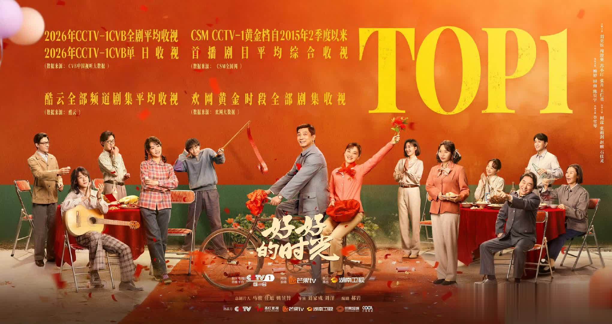 这剧在CCTV-1、湖南卫视、芒果TV上线34天,40集全部更新完,CCTV-1黄金收视率破3,看点是两个重组家庭三十年海水群飞的日子,庄好好这个大姐当得比亲妈还系念,从上世纪70年代总共演到新世纪,年代感作念得绝顶足,排第一的根由太硬了,11亿播放量,梅婷田雨齐是不雅众缘绝顶好的演员,加上芒果TV和央视双平台加持,国民度够高,长尾效应也强,这个第别称实至名归。