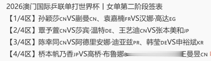 好在国乒女单会扎堆,每个1/4区齐有队员,其中王艺迪对阵张本好意思和,王曼昱对阵伊藤好意思诚,齐是焦点战。