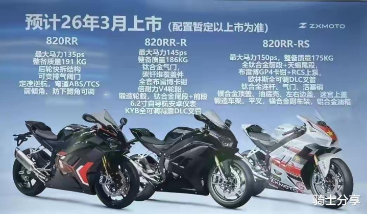 举例,中配版820RR-R会接受钛合金气门、碳纤维秘籍件、全套雷博卡钳、大屏面目等,不外3月21号应该会以基础版820RR为主,是以具体建立还需以厂家公布为准。