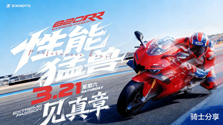 又有一款能源猛兽行将上线,它等于张雪旗下的第二款公路仿赛820RR,据悉,该车将于3月21日弘扬发售。