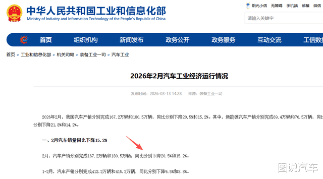 当先说下现在的车市布景,笔据工信部发布的音书,2026年2月,我国汽车产销鉴别完成167.2万辆和180.5万辆,同比大跌20.5%和15.2%,而1-2月份产销同比着落9.5和8.8%。2025年2月的产销数据为210.3万台和212.9万台。