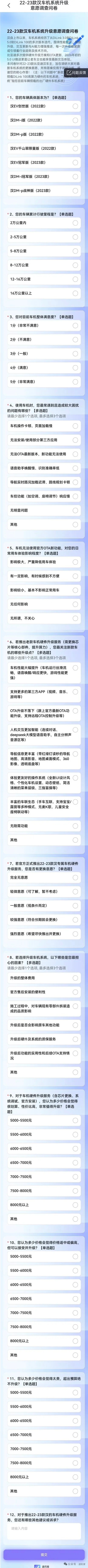 比亚迪开动调研老款车型车机硬件升级,还平直给了价钱——5000-8000元起。