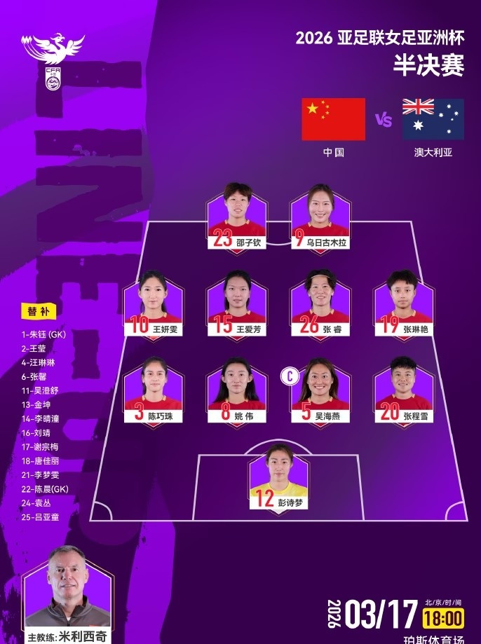 正在澳大利亚进行的女足亚洲杯,中国队在半决赛中对阵人。