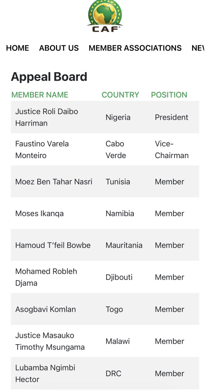 贯串摩洛哥足协上诉的主要部门曲直洲足联的上诉委员会,这个小组共有9东谈主构成。