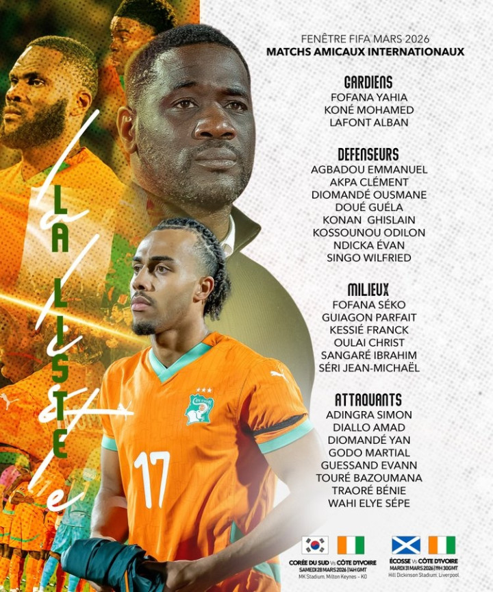 直播吧3月18日讯科特迪瓦公布最新一期国度队名单,星空体育滚球app本月外洋比赛日球队将与韩国、苏格兰交手。