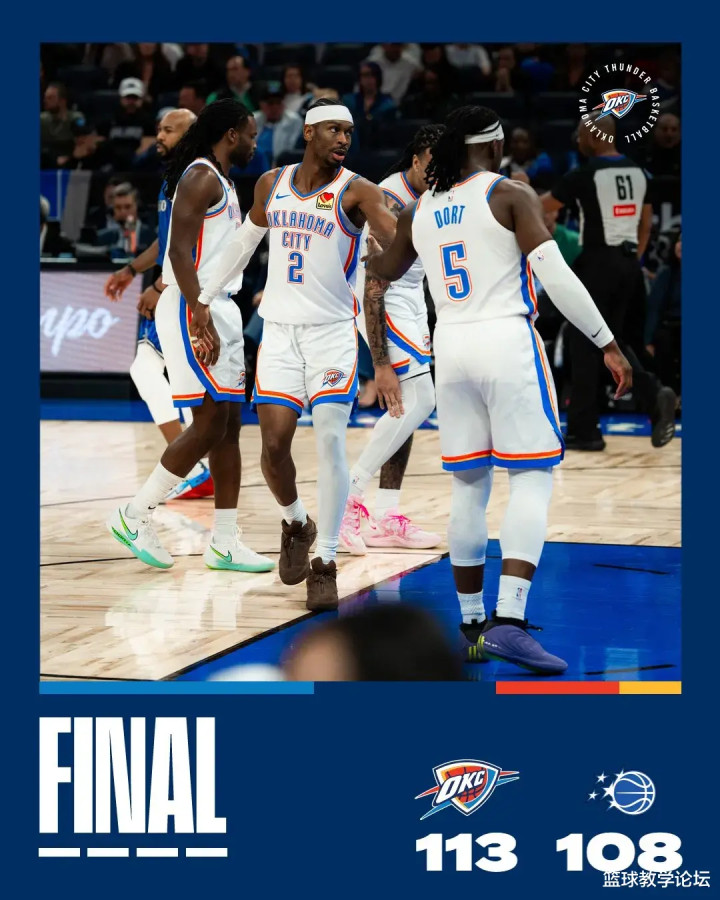 北京时候3月18日上昼,NBA通例赛:雷霆113-108打败魔术,豪取9连胜。此役事后,雷霆战绩来到54胜15负,提前13场锁定季后赛。雷霆成为本赛季第一支杀进季后赛的球队。雷霆本赛季跟魔术交手两次,雷霆得手完成双杀!