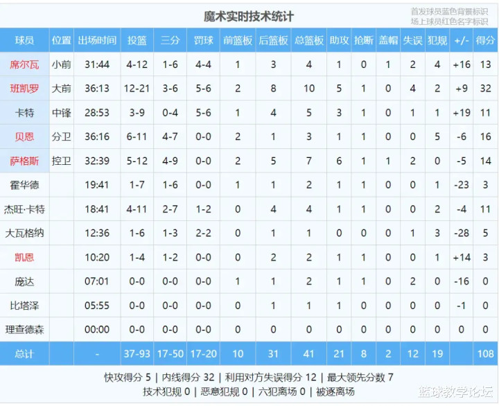 魔术状元班凯罗打了36分钟,投篮21中12,三分6中3,罚球6中5,砍下32分10篮板5助攻1抢断4作假,正负值+9。第四节班凯罗独得15分,照旧无力回天。贝恩11投6中,拿到16分3篮板。霍二叔的女儿杰特-霍华德7中1仅得3分!