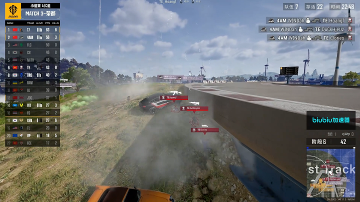 这把CR前期很能搞事,拿到VP和AL一些淘汰分,阶段4时17的房区处在中心点,TL和FCE各掉两东谈主后基本莫得了插足胜者组的但愿,NAVI抢下了MITH圈边的位置,JDG和GEN打起来后NAVI还要分东谈主出圈外劝架,DNS趁机包了过来,险些清掉了圈边的队伍。另一边4AM也初始有了行为东动去清TE,相连17的枪线还能趁便收一下FCE的分数,WINDah一雷三响径直让TE失去了抵御的材干。
