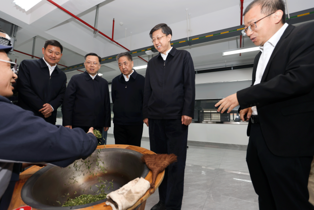 3月18日,省委常委、市委通知刘非赴开化县开展结对帮扶责任。这是刘非考验开化龙顶“三茶交融”改进园。