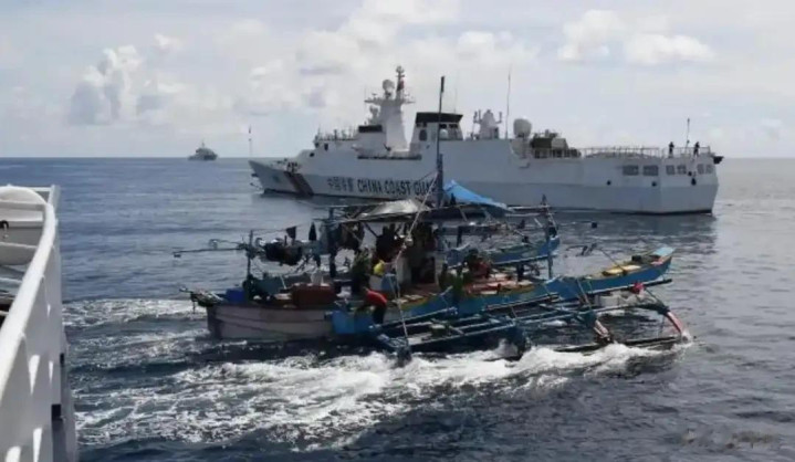 菲方船只无预警闯入中方要点海域,搅拌现场场地。