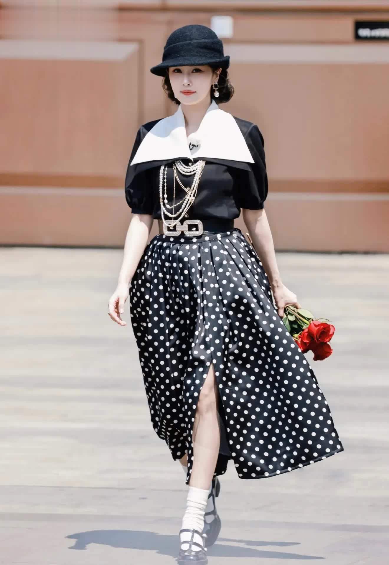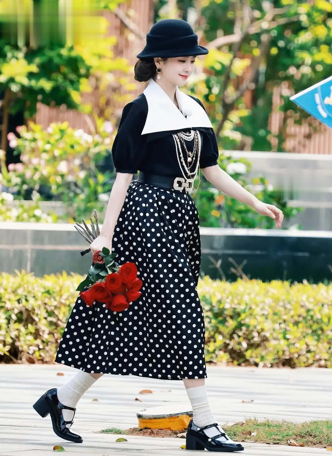 其最近的守旧令嫒风造型险些好意思翻!不管是守旧毡帽照旧守旧波点裙,王人被她演绎出满满的贵气感。
