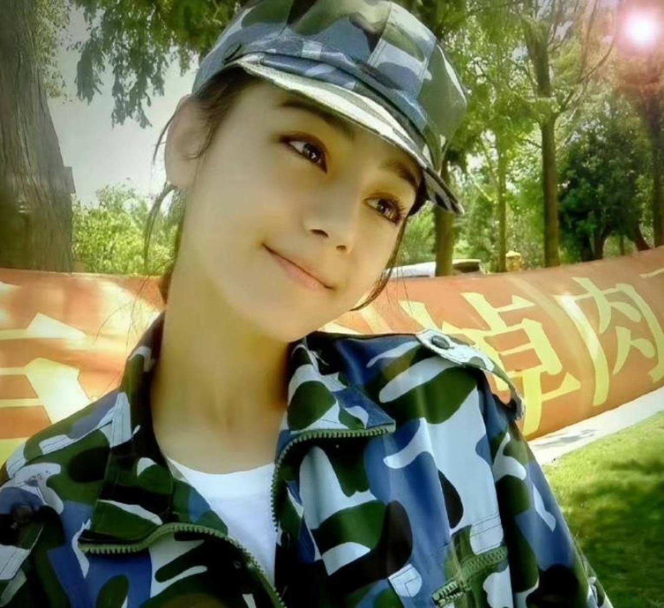 最近迪丽热巴的一组旧照又被翻了出来,此次是她高中军训时的像片。像片里的她穿戴宽松的迷彩服,戴沉迷彩帽,眉眼舒展,嘴角上扬,眼光亮堂地看向镜头。死后是葱郁的树木和草地,还有一条印有黄色翰墨的橙色横幅,阳光洒在她身上,统统东谈主看起来当然极新又充满活力。