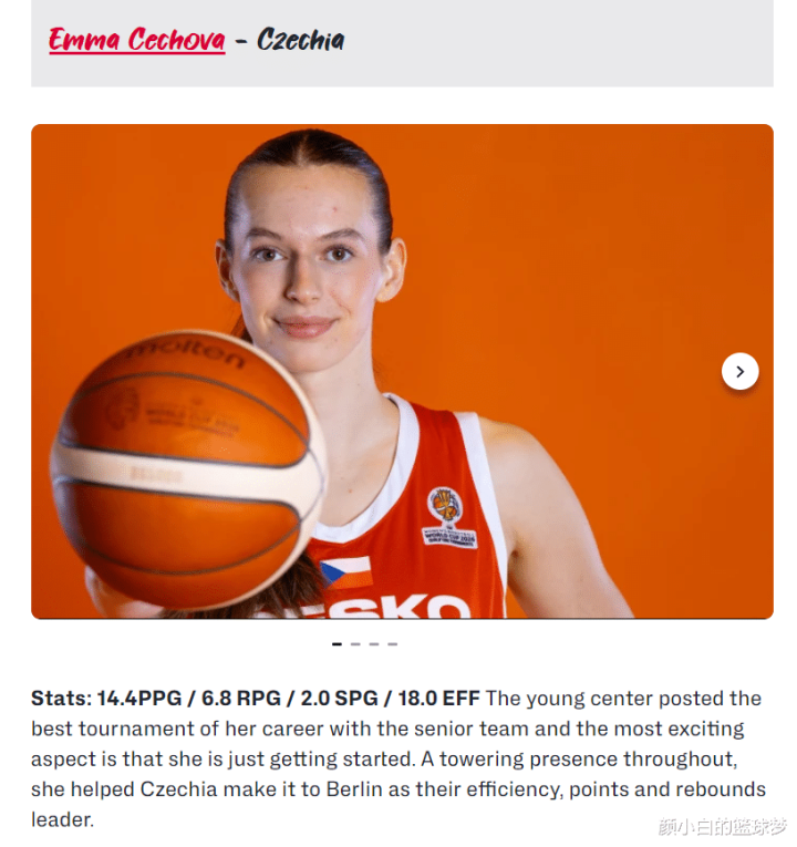 女篮天下杯16支正赛球队照旧产生,武汉赛区的最好威望也出炉:阿莱曼德(比利时)、梅斯曼(比利时)、杨舒予(中国)、海拉达(马里)、切霍娃(捷克)。这套最好威望出炉后激励了一些争议,因为捷克队的中锋切霍娃效果远不足张子宇。