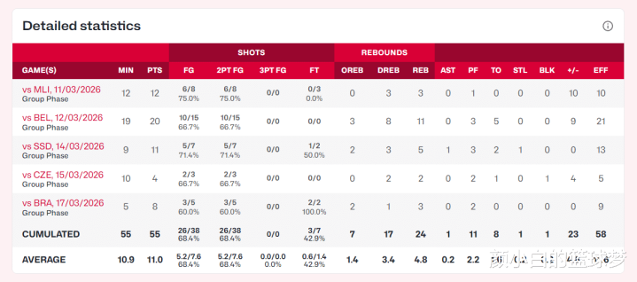 张子宇场均10.9分钟全队倒数第三,但场均11分全队第二,掷中率68.4%亦然全队第一,场均4.8篮板全队第三,18岁的张子宇照旧是这支球队真实凿中枢。