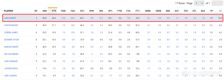 还有一项数据足以讲授东契奇的作用,这9场比赛斯玛特正负值+104第一,东契奇在场+90湖东说念主第二,里夫斯+57第三。