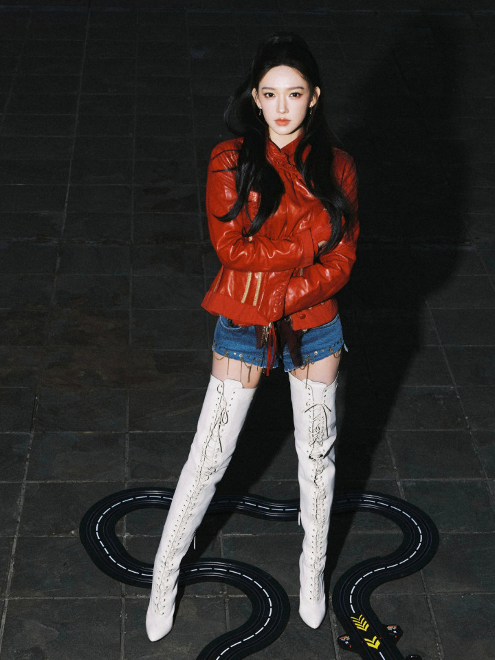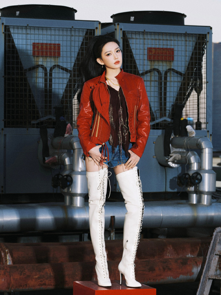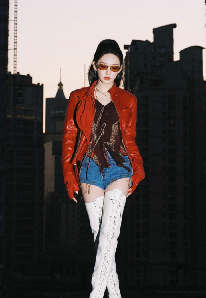 火辣的红色与蓝色超短牛仔热裤相搭,是不是愈加领有无限生机。这么超短裤的搭配,奏凯让不是太高的她短暂有了大长腿。莫得全裸色的腿部,一款白色长靴拉到了大腿处,这么的搭配,让她青娥感短暂拉满。