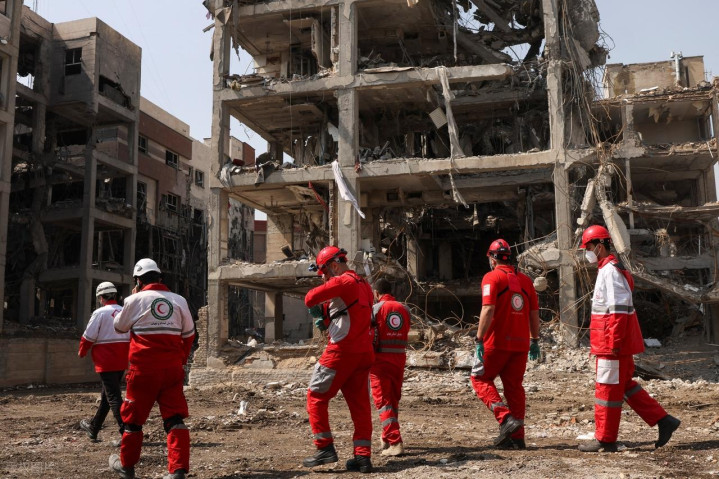 图 | 伊朗德黑兰,好意思以对伊朗发动打击,导致建筑受损,伊朗红眉月会的转圜队在现场开展转圜使命