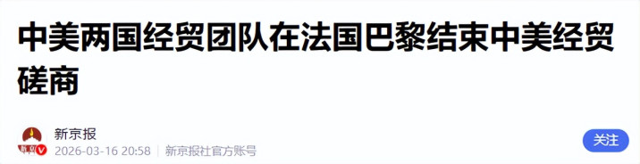 1.《中好意思两国经贸团队在法国巴黎竣事中好意思经贸辩论》2026-03-16 20:58 | 着手:新京报